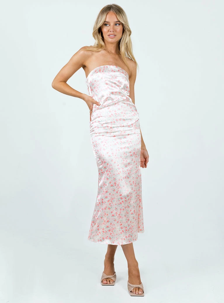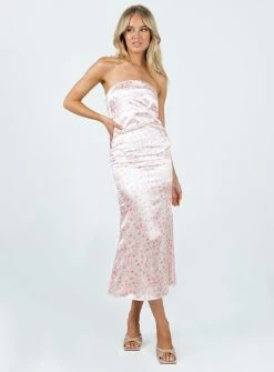 Princess Polly Barnsley Strapless Midi Dress Pink / Floral Pink