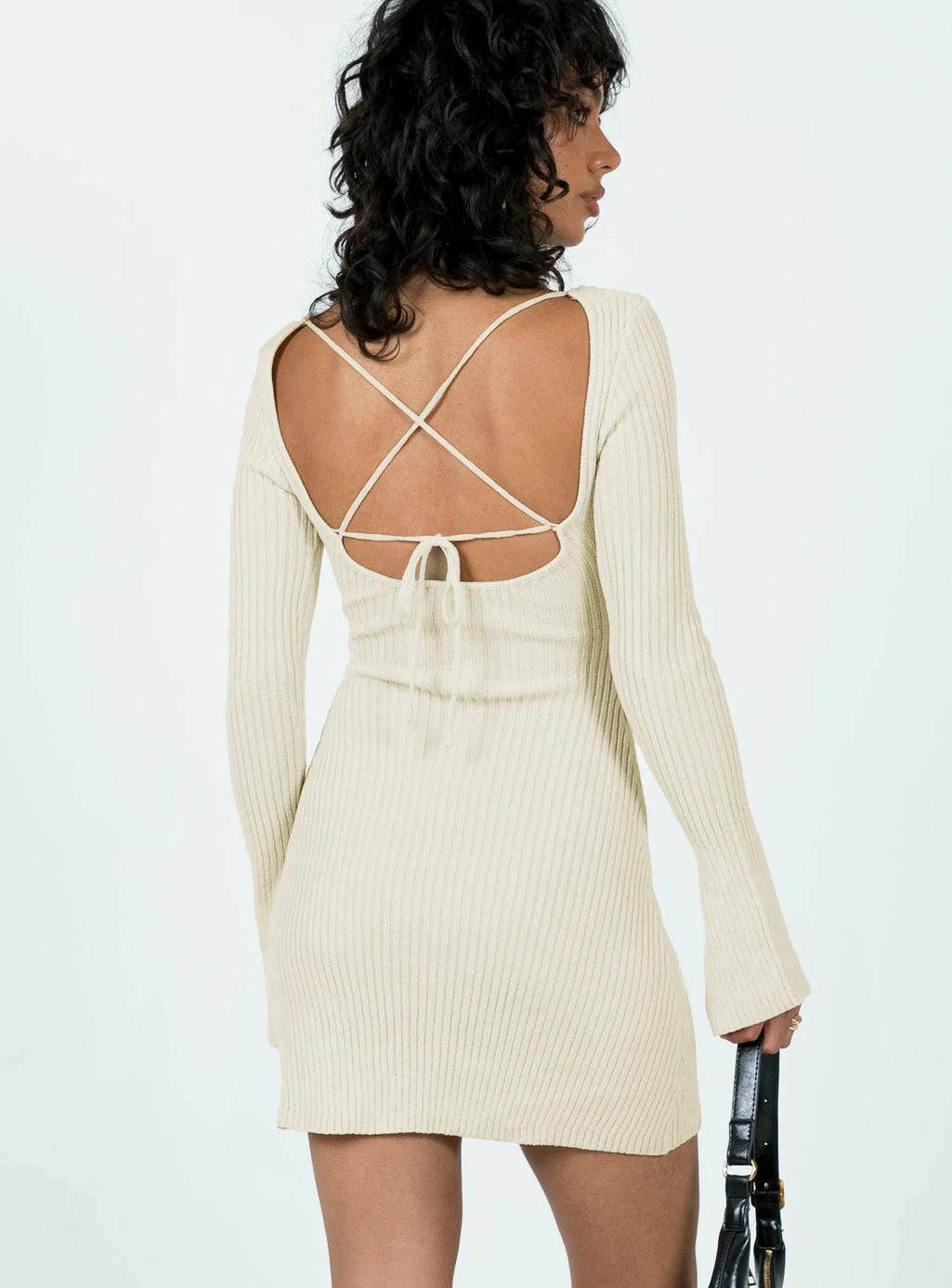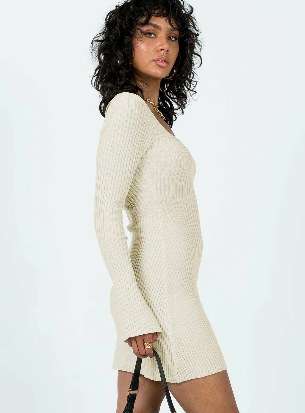 Princess Polly Brownhall Long Sleeve Mini Dress Beige Beige