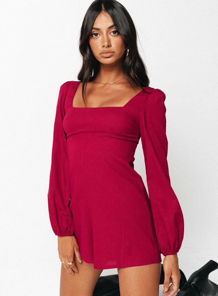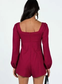 Princess Polly Hastings Long Sleeve Romper Burgundy Burgundy