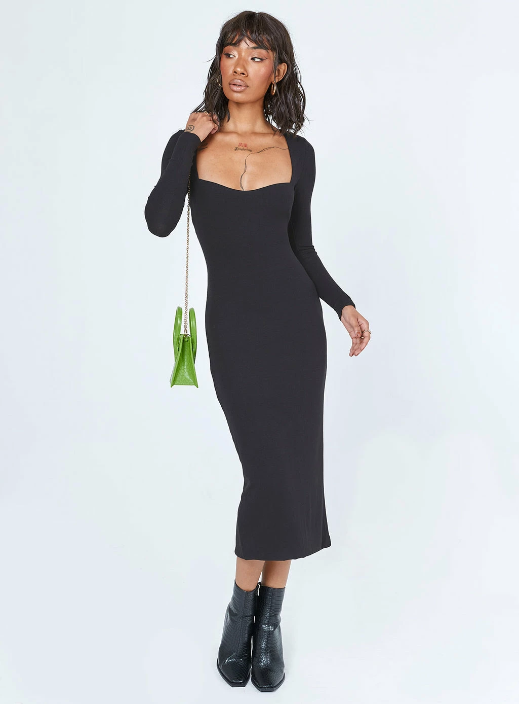 Be the first to review “Princess Polly Nolan Midi Dress Black Black” Cancel reply